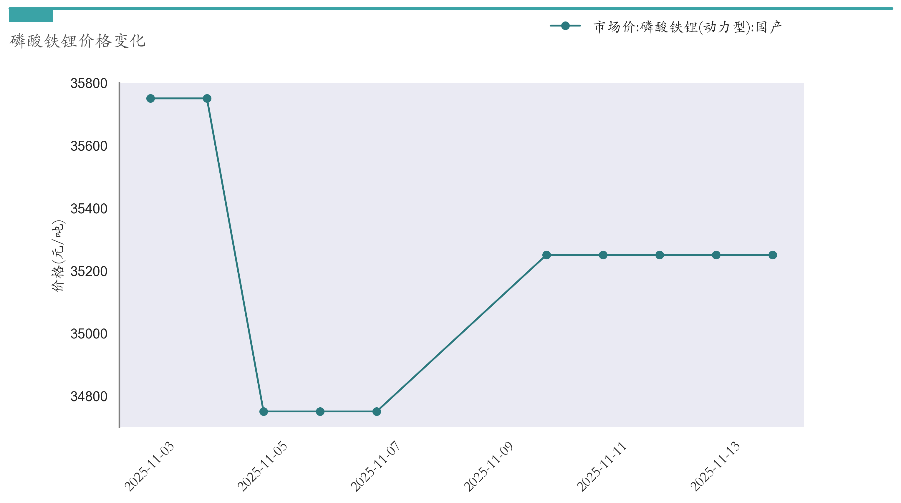 截至11月14日ღ★✿,磷酸铁锂市场报价为35250元/吨ღ★✿,较11月7日上涨500元/吨ღ★✿。近两周磷酸铁锂价格变化如下图所示ღ★✿: